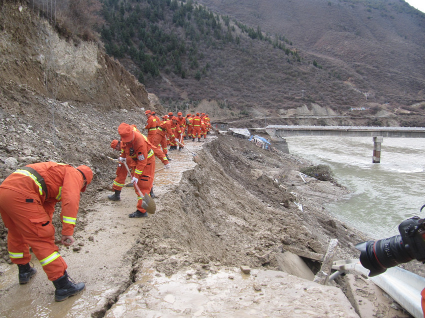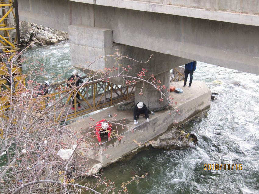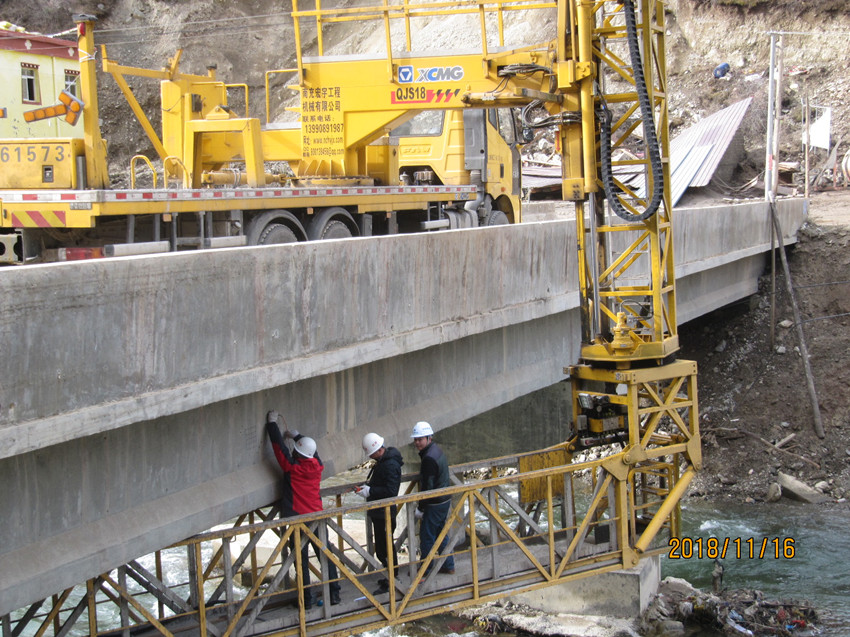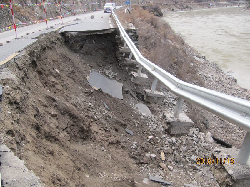 2018年11月12日10点50分,金沙江开始泄洪,处于重灾区的甘孜州白玉县金沙乡由于山体浸泡时间长达9天之久,泄洪造成山体失稳,路基垮塌、路面冲毁、桥梁损毁严重。灾情就是命令,我公司临危受命,在13日中午11点30分接到甘孜州交通局指派任务后,立即部署队伍前往白玉县对受损路基路面及桥梁结构进行检。首批试验检测人员火速行动,历时12个小时于当晚12点40分抵达目的地并于次日上午迅速展开受灾线路探勘。与此同时,公司地质灾害病害、桥梁结构研究专家、博士日夜兼程,艰难跋涉1000余公里后于14日晚到达白玉县,与公司首批检测人员汇合;同步行动的公司桥梁检测车等大型装备翻山越岭,历时两天半于2018年11月15日深夜到达目的地。