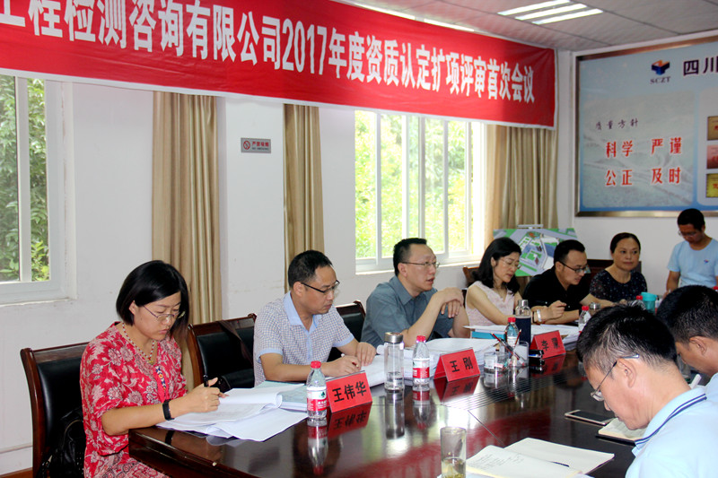 2017年7月29至30日,根据四川省质量技术审查评价中心(评审计划文号:SEA-SY0466-2017)的安排,由李蒙、王伟华、尹显舫、吴林、王刚一行5名检验检测机构资质认定评审员组成的现场扩项评审组,绵阳市质量技术监督局派观察员陈晓玲科长现场督导。评审组依据16版《检验检测机构资质认定评审准则》,对我公司进行了为期两天的资质认定扩项评审。