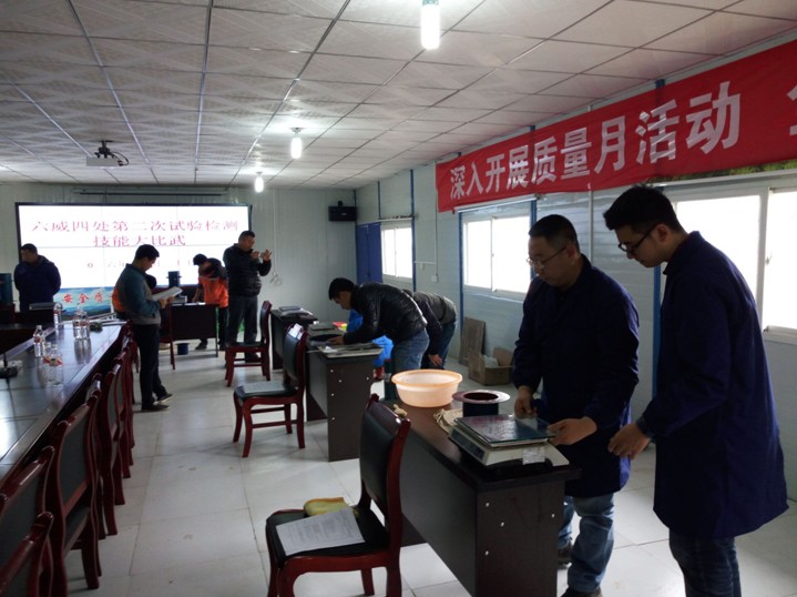 2016年岁末年初之际,六威项目第十五合同段举行了第二次试验检测技能大比武。四川振通六威高速LWZ4中心试验室协助六威四处组织管段内五个试验室参加了比赛活动,共计24名选手参赛。