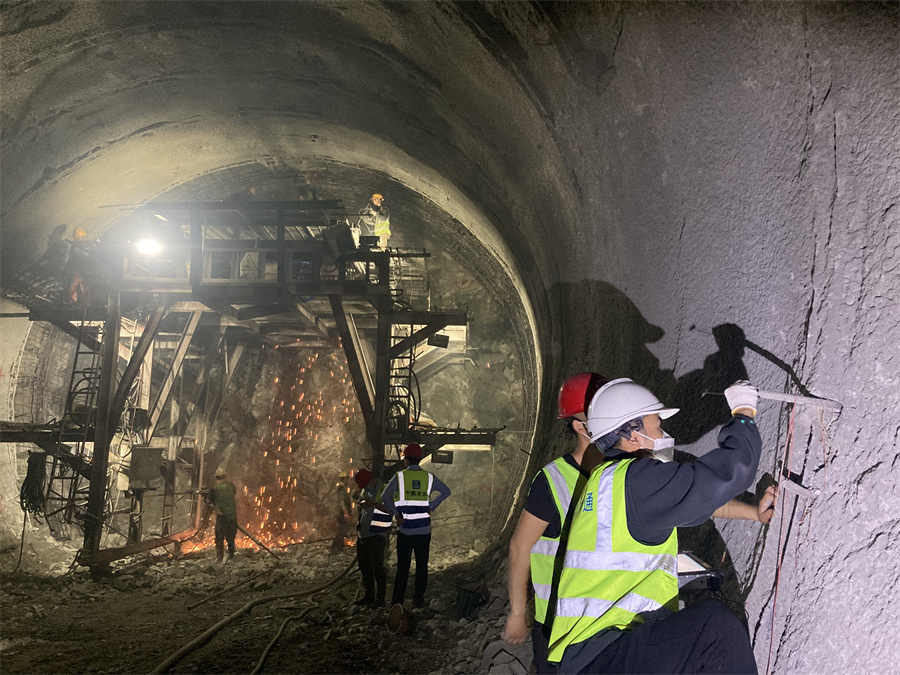 在映秀二号隧道建设过程中,公司都四山地轨道交通JC1标项目部围绕建设单位的节点目标和总体规划,科学谋划、精心组织。张龙、李青虎等检测人员对隧道初支、锚杆、衬砌、仰拱等进行现场检测,经常晴天一身灰、雨天一脚泥,他们主动检测、超前检测、严格检测,科学、准确、及时地为项目业主提供试验检测数据和分析意见,为工程质量控制和评估提供依据,做到了热情服务。