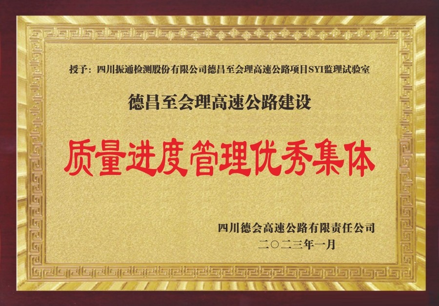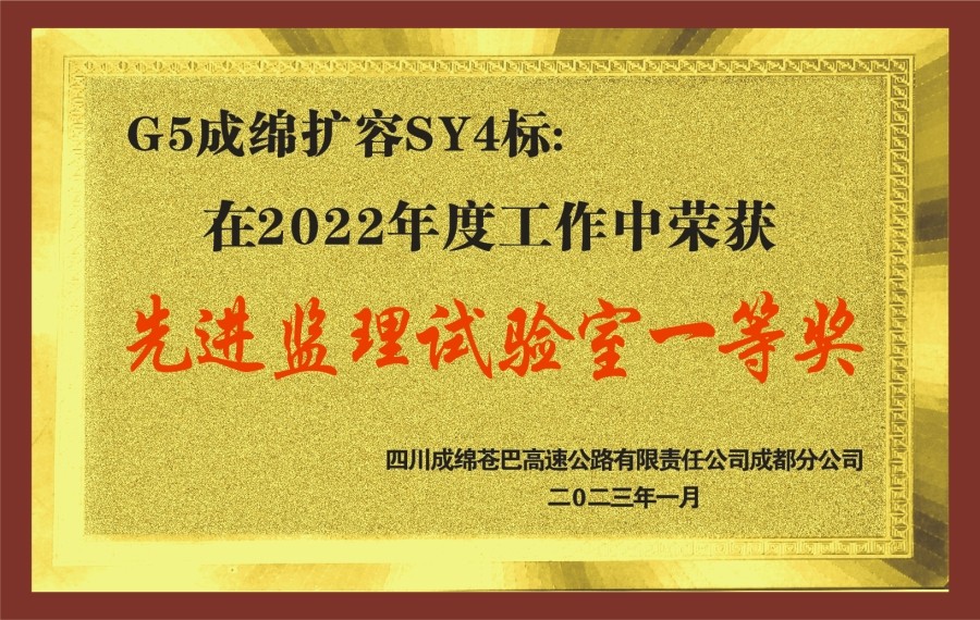 其中,四川振通德会高速项目SY1监理试验室获得“质量进度管理优秀集体”;沿江高速项目XJ-SY2监理试验室在沿江高速2022年度综合检查考核评比中获得“优秀试验检测机构”、在2022年劳动竞赛活动考核评比中获得“一等奖”;成绵扩容项目SY4监理试验室在2022年度建设工作暨奋战120天专项行动考核获得“一等奖”。同时,雅叶高速康定过境段项目SY1监理试验室伏正军、德会高速项目SY1监理试验室曾永康等个人获得优秀试验室负责人、先进个人等荣誉表彰。